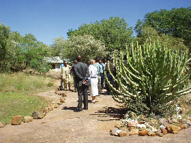 In January we were told that the Maitisong Festival was probably not happening this year since the major backer had dropped out & no replacement found. This would have been a disaster as this would be the 17th year for it. At the last minute the Dept. of Culture stepped in and the Festival went on. It began on 4th April with Sibongile Khumalo, described as a South African "diva". We had heard her years ago at the Anglican Cathedral here. She can still belt out the songs! On the morning of the 5th our Gaborone Singers performed as part of the free outdoor shows (something we had never done before). Ironically, our "outdoor" performance was in Game City, Botswana's first indoor mall! Other highlights of the week were "Mukta" a French jazz group with sitar sponsored by Alliance Francaise and "Eita! Botswana", a local talent show sponsored by the German Embassy. Earlier, on 22nd March there was a day-long celebration of water at Game City in honor of World Water Week -- very important in a country where even the currency is Pula (rain). At the same time Botsalo Books opened a new store there and featured a book signing by Alexander McCall Smith. If you haven't read his "#1 Ladies Detective Agency" series you should rush out and buy all four volumes. They are published by Polygon, Edinburgh [also an American edition but I forget who]. The first (title as above) is 1999, the 2nd [Tears of the Giraffe] 2000, the 3rd [Morality for Beautiful Girls ] 2001 and the 4th [The Kalahari Typing School for Men] in 2002. A fifth is promised for later this year. They all take place right here in Gaborone and, although fiction, are true to life (as well as hilarious). Unfortunately they don't mention succulents, but what can you expect from an expert in medical law (as well as author of excellent children's books). I appeared on local television news on the 24th of March. I went to a panel discussion at the University on a shopping mall being built in the floodplain of the Segoditshane River which bisects Gaborone. They showed the contractor who seemed to think it was all right to build there, but ignored the other panellists. Instead they made me appear as his opposition (I was only an audience member asking pertinent questions -- like why no Environmental Impact Assessment has been sent to us at the museum as required under the Monuments and Relics Act.) |