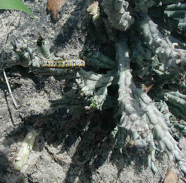 Christmas was very quiet. On the 21st of Dec. Huernia levyi from Mpandamatenga finally bloomed. This confirms that we finally have the right species. This is especially nice as this species features on the present T-shirt of the International Asclepiad Society. On the 22nd it rained and cooled things off. Since then we have been having rain about once a week, alternating with hot, dry days. On the 24th just at closing I was given a letter stating I will be offered a contract for another three years. We hope to be in California for a brief break in April/May. As usual I got lots of books for Christmas. Our tree this year is a wire baobab hung with little silver balls. Back at work on the 29th a few of us zipped down South to Pitsane and Kgoro Pans. The former was dry and overgrazed and we found a lot of Bulbine narcissifolia uprooted and lying in rows. (Upon enquiry we learned it is medicinal.) The latter was much better and had Plectranthus tettensis in bloom. That evening Isaac Lusunzi & family came for dinner as they were visiting from Pretoria. As the New Year arrived, we watched fireworks from our front yard. On the 3rd Lilian Turton treated us to lunch at Sanitas, a Plant Nursery cum Garden Restaurant. On the 4th we saw our first film of the year - the new version of Peter Pan. Despite all the innovations, it brought back memories of my freshman year at BHS when I flew on piano wire as baby Michael. (I was the littlest kid in school at 4 ft 7 inch.) On the 6th eight of us set out on the 2nd Millenium Seed Bank trip. Our first stop was at the village of Artesia not far North. There we found Adenium oleifolium in flower, so there was no seed. We spent the night at Moremi Village on the north side of the Tswapong Hills. Nearby Moremi Gorge is a National Monument with ferns, figs and other plants which contrast with much of Botswana. We spent the next morning with Mr Seabi, a traditional healer who showed us many useful plants (including the largest population of Euphorbia venteri yet discovered). We also saw the large caudiciform Adenia fruticosa. In the afternoon we drove up to Francistown, stopping briefly to look for more E. venteri but finding instead a huge population of large Stapelia gigantea in full bloom. On the 9th we drove up to Tsamaya (Goaway!) and found both Pterodiscus aurantiacus and Anacampseros (Avonia) rhodesica in full bloom. (We managed to collect seed of the latter.) In the afternoon we continued West to the village of Thamashanga and found Euphorbia espinosa, Orbea caudata, Huernia verekeri, a twisted stem Stapelia gigantea and many more. The Orbea and Huernia were in full bloom. Next day we drove west from Francistown to Nata the long way - along the east side of Soa Pan. We collected seed of Sesamothamnus lugardii but I missed a shot of a huge monitor lizard lounging on one of them (I had to go back for a camera, & meanwhile he woke up and left.) At the Junior Secondary School where we stayed in Nata there were lots of tubers of Jatropha seineri with leaves, flowers and fruit. On the 11th we drove to Maun via Gweta Pan, Ntwetwe Pan, Khudiakam Pan and Nxai Pan. At the latter we saw a pair of cheetahs. This is the first time I have seen some in the wild. We collected grass seed, but there was not much in the way of succulents. Next day we drove out to Okavango Ceramics where a purple-flowered Orbea was reported. Unfortunately it had no flowers so I'll have to wait to find out what it is. We found shiny green beetles eating one plant and caterpillars of the African Monarch butterfly eating another. A neighboring plant of Stapelia kwebensis (in flower) was being eaten by a green caterpillar with white spots. It has pupated, so I may be able to identify it when it emerges. We also visited the botanist Dr Naidu Kurugundla at Water Affairs.