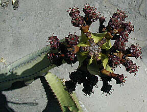 We left Botswana on 18th April, the worst birthday of my life. All the way to Madrid there were noisy young people in the aisles of the plane shooting flash pictures. The ride was bumpy but they refused to obey seat belt signs. [Incidentally, Polly chose Madrid as there were security warnings & delays in London!] Fortunately the onward flight to Los Palmas was better – +we each had three seats and got some sleep. We managed to find an inexpensive but clean hotel (the Valencia) in the downtown area and spent the rest of the day (the 19th) changing money and shopping. For those not familiar with Los Palmas, it is the largest city in the Canary Islands and is on the island of Gran Canaria. Many people assume the isles are named for birds (they do have canaries), but in fact the name stems from the Latin "canis" or dog. King Juba of next-door Mauritania (now Morocco) named them that after receiving large dogs from there. (Incidentally this is the same king who had a physician Euphorbos (=well fed) from which we get the name "euphorbia" for one of his medicinal plants.) On the 20th we went to the Canary Museum and learned about the early islands’ inhabitants who came from North Africa and spoke a variation on the Berber language of today. Today the Islands are a part of Spain and the islanders speak a variety of Spanish (or should I say "Thpanith".) Next we passed a fountain with a roof to keep the rain off and a large Cathedral with dog statues out front. From there we visited the House of Columbus and learned about his stays there going to and from the New World. We ended the morning with lunch at "La Dolce Vita", an Italian place. That afternoon we went to a science museum with lousy Aeoniums and watched an IMAX film on caves – in Spanish. We also looked at a 3-D exhibit on Mars and I found I had no trouble using my new glasses. (Polly also got new ones, but still has trouble.) There was a huge sundial outside which clearly demonstrated that the Canaries are two hours out of the time zone they should be in. (It was dark when we got up and light late in the evening.) On the 21st we went to the Botanic Garden at Tarifa Baja. The bus stop let us out right at the garden, but then we found the path crawls down a very steep volcanic cliff. It was well worth the climb down with euphorbias, aeoniums, dragon trees etc., all over, but at the bottom we found there was no bus! We were kindly given a ride back around to the top or we might still be standing looking up at that cliff. The next day we took a three-hour ferry across to the next island, Tenerife, landing at Santa Cruz. We visited a terrific Natural History Museum in which we learned there are caterpillars (of the spurge hawk moth) which eat some of the euphorbias! Then we went up the coast to San Andrea and checked out succulent relatives of carrots, senecios (= kleinias) and more euphorbias. It was a long day – the boat got back to Los Palmas just before midnight.) On Friday the 23 we took a bus south to Faro de Maspalomas where there is, indeed a faro or lighthouse. We strolled past the nude beach (Polly swears she didn’t notice) to a dune reserve. There we rode camels and Polly got sunburnt. The plants were not great – a lot of invasive foreigners such as wild tobacco, mesembyanthemums and castor oil plants. That evening we had dinner back at Los Palmas at "O Solo Mio" with Sophia Loren and Pavarati (painted on the wall). On the 24th we did more shopping and then headed out for a plane to take us to a marathon month of visits in California. Incidentally, books were a problem – most were in Spanish. The first I bought was Planta Curativas en Canarias (Healing Plants of the Canaries – Manuel Mora Morales, 1997, Globo, Islas Canarias). I struggled through it and learned (among other things) that the milkweed Periploca laevigata is a purgative but is a cure for Euphorbia canariensis (also a purgative) when the euphorbia latex gets on the skin. Fortunately we found both the euphorbia and the periploca in bloom. The best book I found is fortunately in English- Wild Flowers of the Canary Islands (David & Zoe Bramwell, 2001, Rueda, Madrid. It has a history of botanic exploration, descriptions of vegetation on the seven main islands, areas of botanic interest and, of course, pictures and descriptions of each species. Well worth the 33 Euros (about $39).