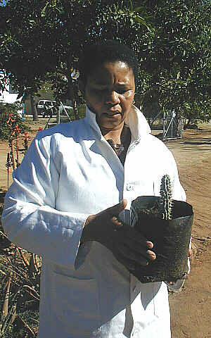 We arrived back in Botswana on the 26th of May and Polly went to her Book Club meeting that same evening. Next day we went to see "The Day After Tomorrow". We saw it at 5:15 local time which was still "yesterday" in California! Although the climate change is exaggerated, I believe there is a real threat. This was brought home by an article in the Californian on 23rd May which had a picture of palm trees downed by rising seas in Majuro, capital of the Marshal Islands. It reminded me of the remark of Joshua, adopted Micronesian nephew, who commented on the fact that Catalina Island was made of a mountain. When asked what his home island of Kwajelein was made of, he replied, "Whatever people put on it". On the 28th I looked in on the Botanic Garden and noted that monkeys had nibbled on Stapelia gigantea fruits. We had lunch at Sanitas with Lilian Turton and looked at plants which Queen Turner (herbarium head) had brought back from Bokspits at the far Southwest. Among them were plants of Hoodia officinalis, a new record for Botswana. On the 29th Polly helped man a quilting booth at a local craft fair and on the 30th we went to a BBQ at the new site for a Capital Players playhouse in Tlokweng Village. It was held jointly with the Hash House Harriers who outnumbered us. I collected Duvalia polita from the empty lot. On the 31st I officially reported back to work and we went to choir rehearsal in the evening. Next day the museum opened a fantastic exhibit of San art (though the prices are now unaffordable) and the film club showed "Run Lola Run" a strange German production. Polly won a chocolate egg for remembering the title of another such film "Das Boat". On the 5th we went to see "The Passion of Christ" which we had skipped in the Canaries because it had Spanish subtitles. (The spoken words are a mix of Aramaic and Latin.) Despite all the hype, it is a strange mix of modern myth and somewhat mixed Biblical references. It is certainly gratuitously violent. Next day we went on a bird club walk at Ditubamaruba, an area of settlement in the 1820s which still has stone walls and hut foundations. Polly stayed back at the cars where there are foundations from a German mission of the late 1800s. Despite being unable to walk far, she did witness a hoopoo chased by a drongo. On the 8th we tried to watch the transit of Venus across the sun, but found it was too small to detect. There was a book signing on the 12th for Unity Dow's new novel "Juggling Truths". It is a little more positive than the previous one. It is a very good description of the process we all go through in trying to balance various "truths" which is exaggerated in areas where a colonial "truth" is imposed over local ones. On the 16th I collected plants in the Kanye area (nothing exciting). There was also a book signing for a new book on Grasses of Botswana (a simple listing by Monicah Kabelo and Daniel Mafokate of our herbarium) as well as the Trees of Botswana which has actually been out for some time. Some of the photos in the grass book are by Polly. On the 18th Polly ordered a diamond and sapphire ring for our 40th anniversary. The diamond is a certified Botswana one! We celebrated our actual anniversary next day at our friend Brian's BBQ (lovely prawns!) - it was his 40th birthday. We rushed from the BBQ to a farewell party for our friend Nigel Rollo. There we met an old friend Gabriella who was a fellow teacher with Andrena Teed (Nigel's wife). Gabriella is still just as short as the second graders she taught. On Monday the 21st we inherited the Teed/Rollo dogs - two little white Maltese dustmops named Spike and Chips. On the 24th there was a booksale at a local shop and on the 26th we went to buy books from Polly's friend Sheila whose husband died in April. It turns out her husband was the John Case I mentioned last year. She also was a volunteer (British) in Malawi! While we selected books, an olive thrush (rather like the American "robin") was eating a horned melon in the garden outside. That afternoon the Choir had a picnic at the Gaborone Game Reserve which was attended by Margaret Nash, Minister of Lands, who is a choir patron. On the 30th there was a farewell for the Museum Director Tickey Pule who is promoted higher up in the Ministry of Labour & Home Affairs. We are now in limbo awaiting a new one. That same evening Polly hosted her book club at our house with a Mexican dinner and even a string of parrot lights to give the proper Cantina atmosphere. The 1st of July was a holiday (Seretse Khama Day) and on the 2nd we set off for a grand tour of the Land of the Rooibos. But more of that later. Back at the end of April, California hit us with a heat wave (ending with a visit to Joshua tree!) When we returned to Botswana we had nights hovering just above freezing which lasted until the 29th of June when it clouded over and warmed up. We had an unusual rainstorm that night. (Botswana usually has summer rain.) |