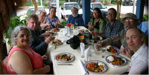 ![]() At the dinner table (left to right): Peri Frantz, Rolf Aalbu, Doug Bradford, Polly, Bruce, Karole Ward, Tom Inderkum, Bill Frantz, Rick Gates (photo by John). |