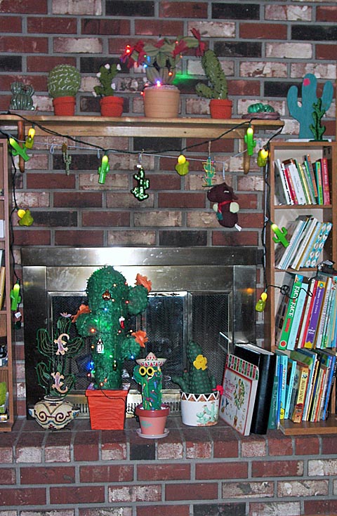 Holidays etc. seem to blur into each other. We began on the 21st of Nov. with a celebration of Compact Day at Hodel’s with the Mayflower Society. (Alice is the local Governor.) The local group is rather small in attendance, even though the list is long. I guess they were saving their appetites for the following Thursday. On the 22 we drove up to Ceres to celebrate the 100th birthday of great aunt Dora, my grandfather’s baby sister. The party was held in the house built by my great grandfather. The house has been painted and the upstairs bedrooms are arranged museum-style. Downstairs is used as a law office by Patricia Cousins, Dora’s daughter and my mother’s cousin. Out front there is a row of Agave americana. Presumably this is the same clone which my grandfather had at his house in Stockton and which I have planted at my mother’s house in Bakersfield. There are also two palm trees which now tower over the two story house. Mother was impressed by the size of the black walnut out back. She remembers it from her youth (when, presumably, it was smaller). Ceres has always brought me nostalgic memories of summers spent there. Not only were there orchards and livestock, there was a greenhouse of exotic plants and an attic of South American insects. A paradise for kids. Interestingly, there were two cakes, one labeled Dora Alice and the other Alice Dora. My great-grandparents could not agree on the order! We always knew her as Aunt Dora, which caused less confusion as mother is also Alice. The place was packed with relatives. Unfortunately, we have just received news that Dora died in the 10th of Dec. She did better than her husband, John, who died a month before his hundredth birthday! From Ceres, Polly and I went further north to Sacramento for Thanksgiving with relatives there. In Sacramento we learned that our friend Ellen Drake, who had moved back to Kansas from Botswana had lost her battle with cancer. I never did get her to autograph her book on Baobabs which came out just after she left Botswana. Mother, Anne etc. went back to Bakersfield and then to the LA area for Thanksgiving with relatives there. I think we have too many relatives. Michael brought his parents down from Greenville for Thanksgiving, but John, who lives in Sacramento was absent with a cold. We went to a couple of thrift shops on Friday with James and Emily and bought too much as everything was half price. On Saturday John was better and we all went out for breakfast. Michael took his parents back to Greenville and we went to an antique store and a movie with John. We returned to Bakersfield via Fresno on the 29th and had lunch with Polly’s sisters there. We returned to Fresno on the 3rd of Dec. for the annual Cactus & Succulent pot luck. Our “friend” Herb Thorn stole the beautiful pot I got in the gift exchange. I ended up with a funny vase. Oh well, the food was good. I also got a couple of nice pots in the silent auction, even if I did drop one and break it next morning. (A little gorilla glue put it back together.) Of course, there was also the Bakersfield pot luck on the 8th. I didn’t get anything on the silent auction! But, again, the food was great. How can I lose weight at this rate? In addition, Polly & I have joined a senior choir, the Goldenaires, and we have performed ten times from the 2nd to the 17th of December. Most of our audiences are elderly. It really brings home the population aging that I have read about! We have decorated with cactus lights, chili lights and various artificial cacti for Christmas. I wish they made equal items featuring Euphorbias. |